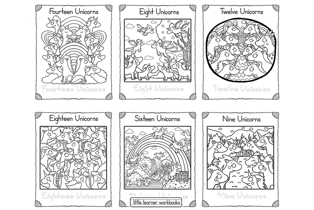 Cute, busy and original Unicorn drawings to count, color and enjoy